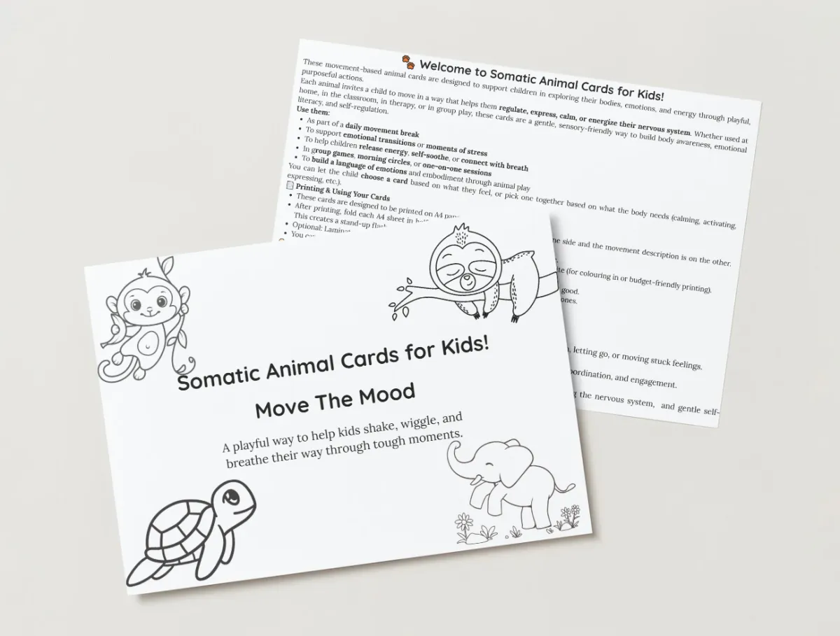 Somatic play is just a fancy way of saying — ‘Let’s help kids move big emotions through their bodies instead of bottling them up.’ That’s what this whole card deck is about.
